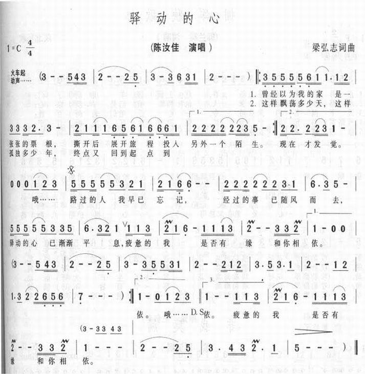 >> 驿动的心-陈汝佳(简谱)