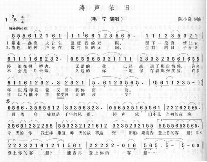 >> 涛声依旧-毛宁(简谱)