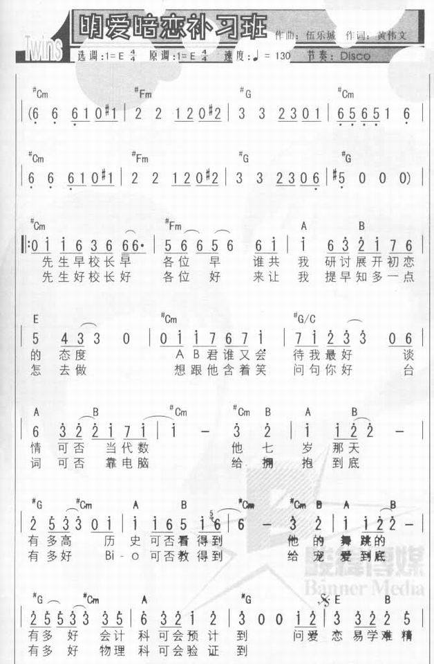 >> 明爱暗恋补习班-Twins(简谱)