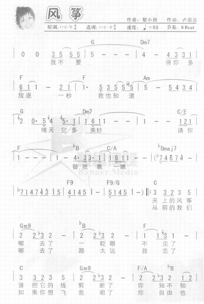 >> 风筝-孙燕姿(简谱)