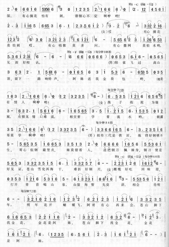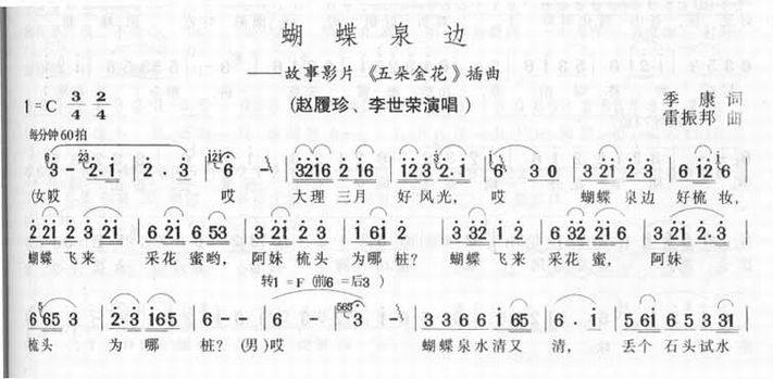 >> 蝴蝶泉边-赵履珍 李世荣(《五朵金花》影视简谱)