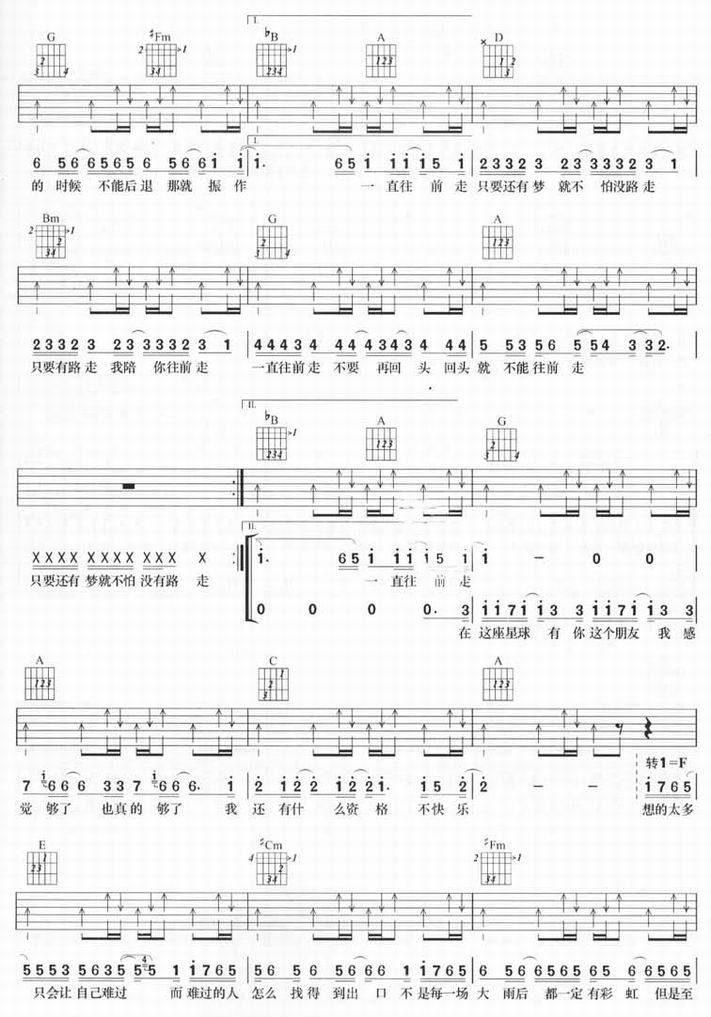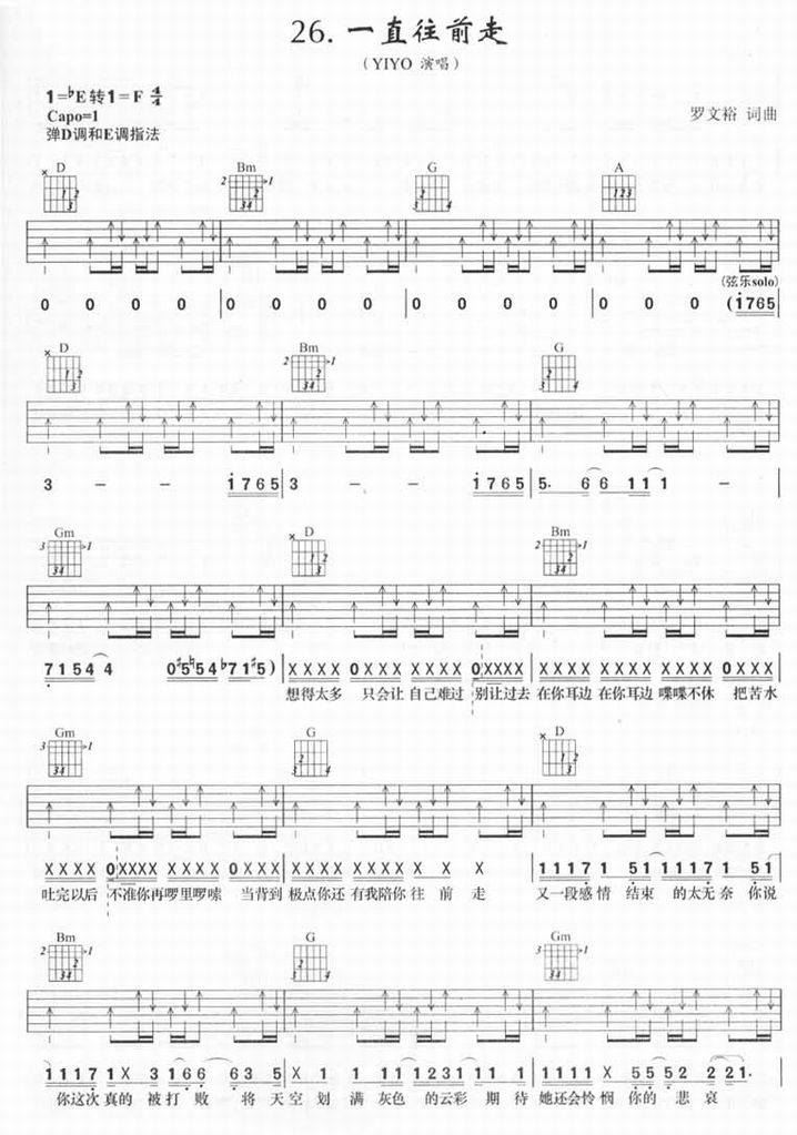 >> 一直往前走-Y.I.Y.O(吉他谱)