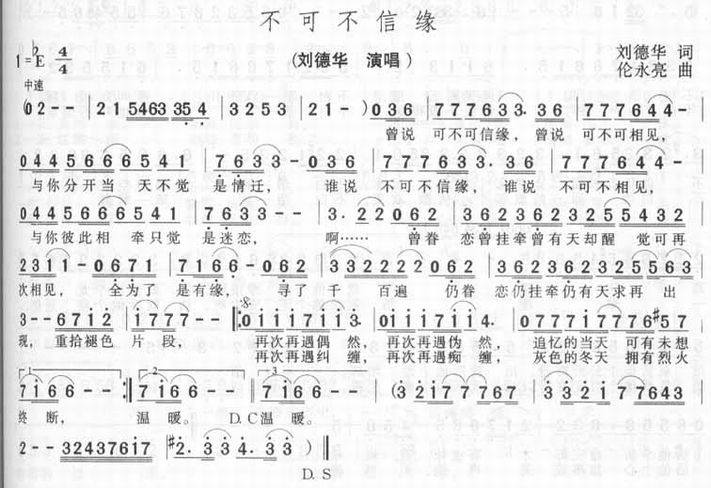 不可不信缘-刘德华(简谱)