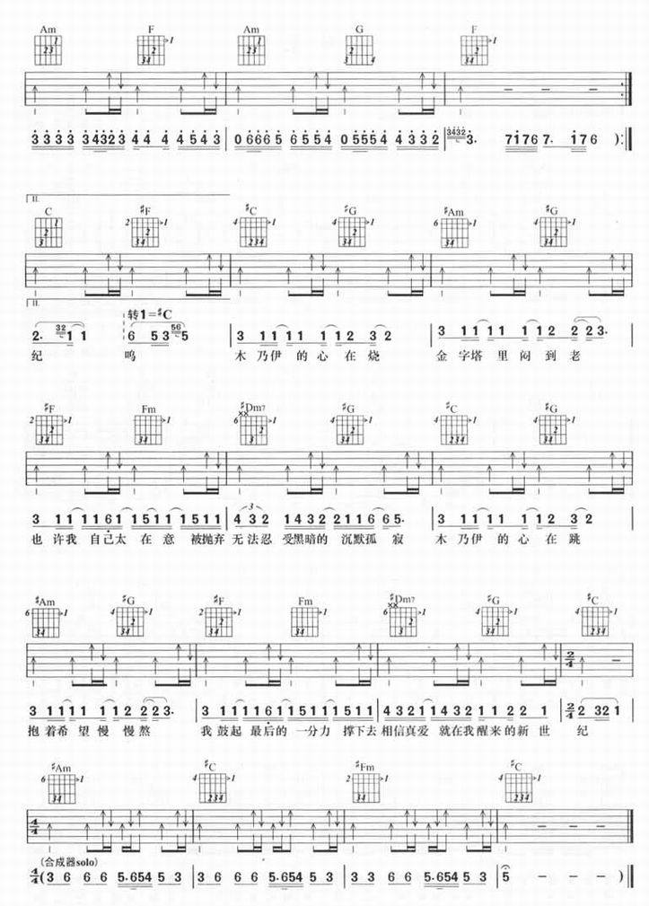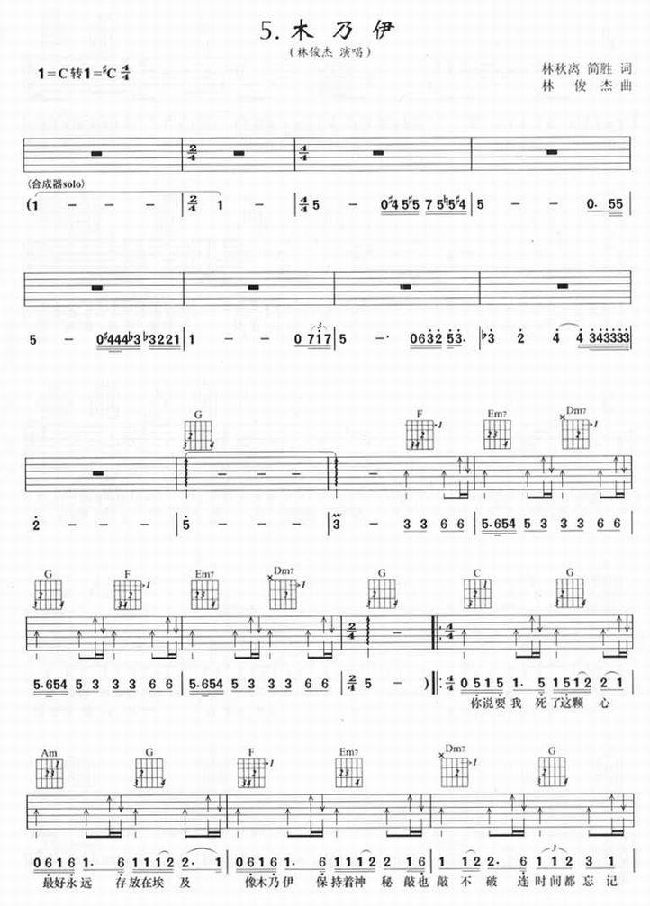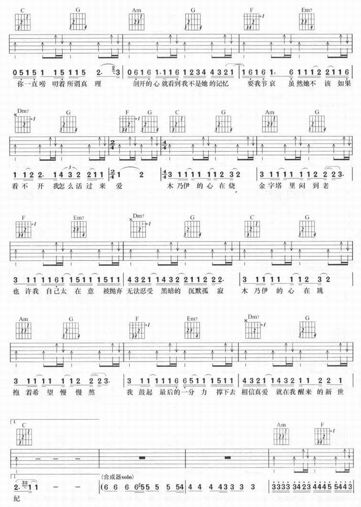 木乃伊-林俊杰(吉他谱 吉他曲谱 吉他六线谱 吉他歌谱 吉它谱 影视吉他谱)