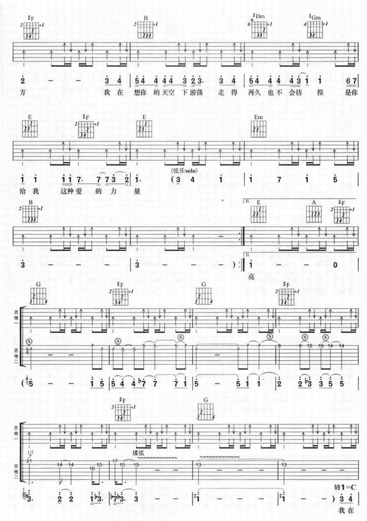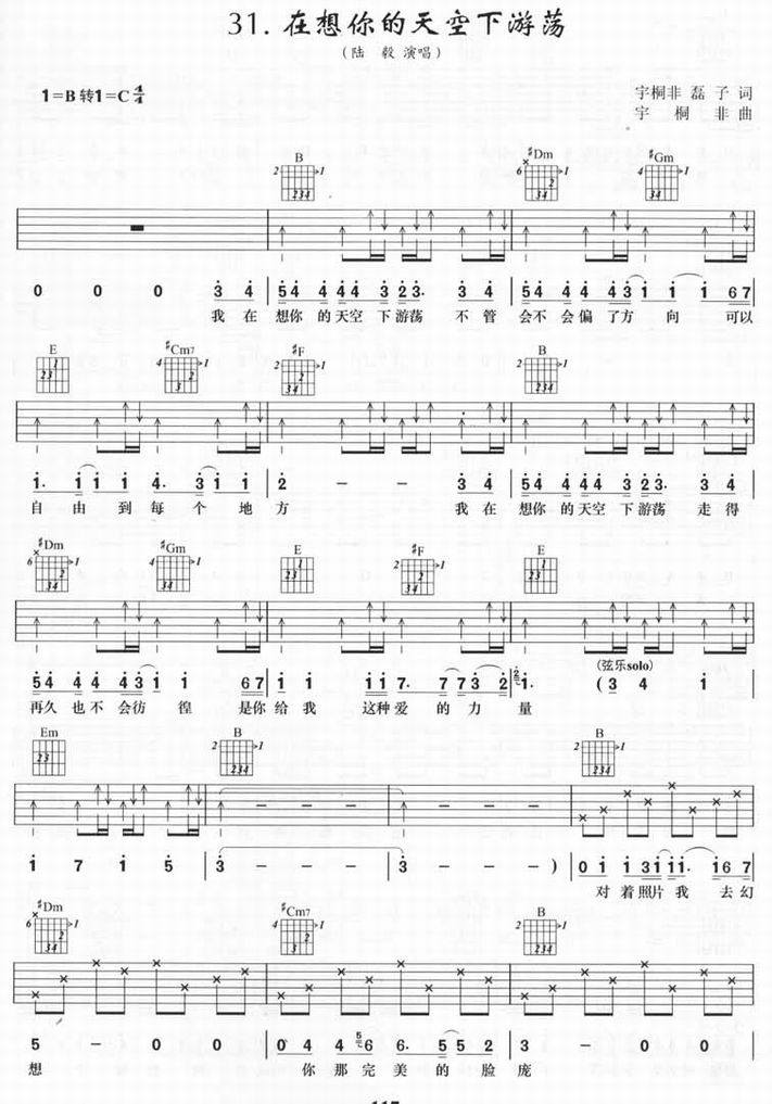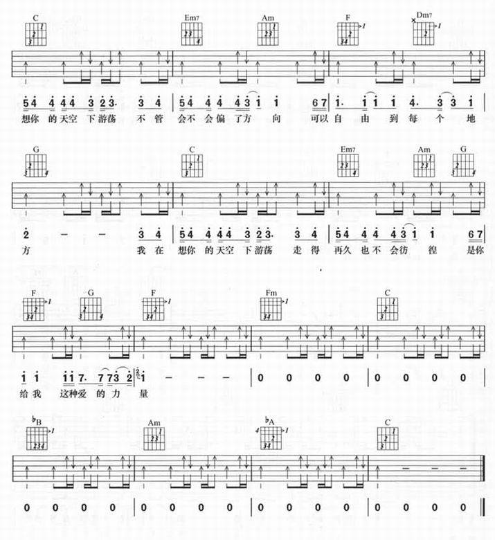 >> 在想你的天空下游荡-陆毅(吉他谱)