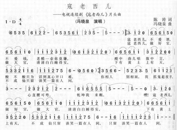 >> 寇老西儿-冯晓泉(影视简谱)