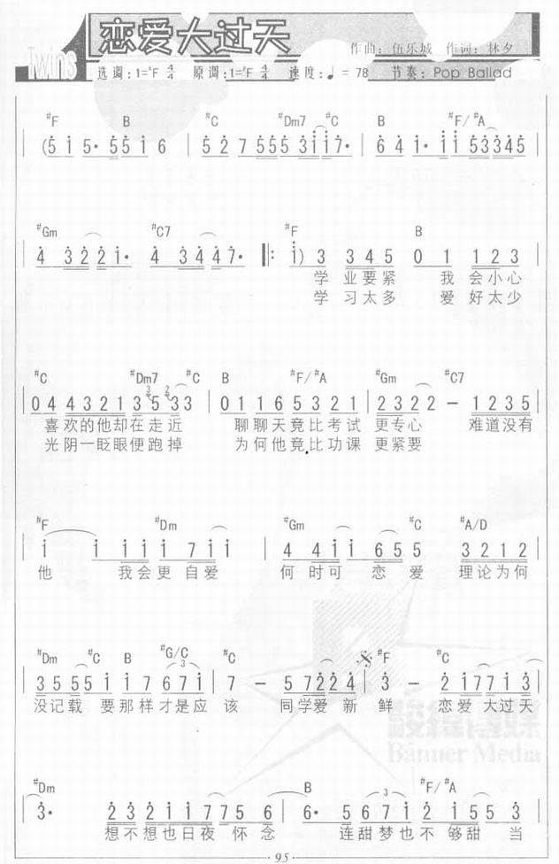 >> 恋爱大过天-Twins(简谱)