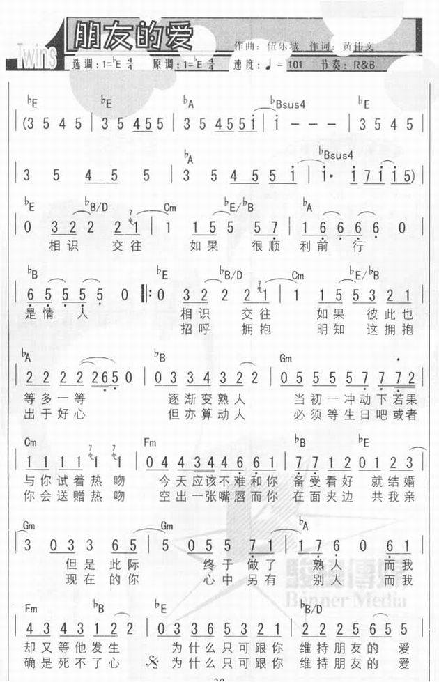 >> 朋友的爱-Twins(简谱)