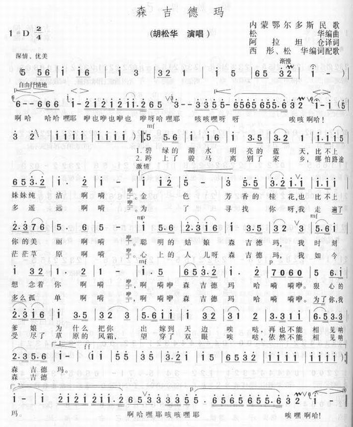 >> 森吉德玛-胡松华(内蒙民歌简谱)