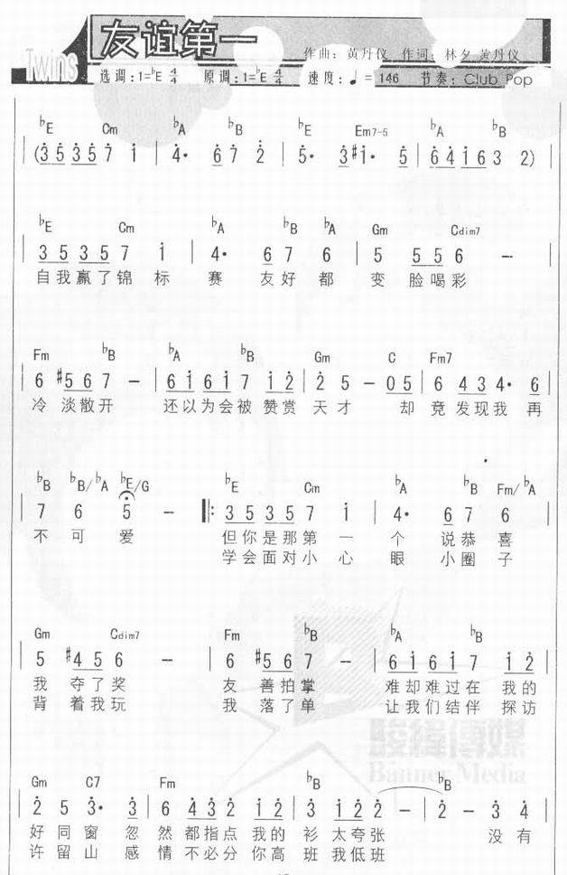 友谊第一-Twins(简谱)