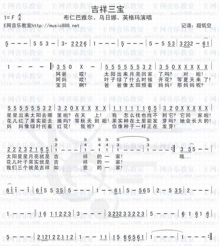 >> 吉祥三宝-布仁巴雅尔 乌日娜 英格玛(春节晚会简谱)