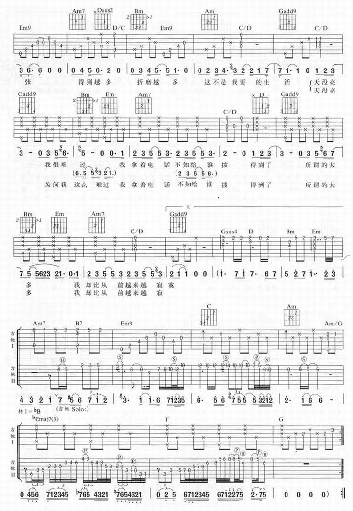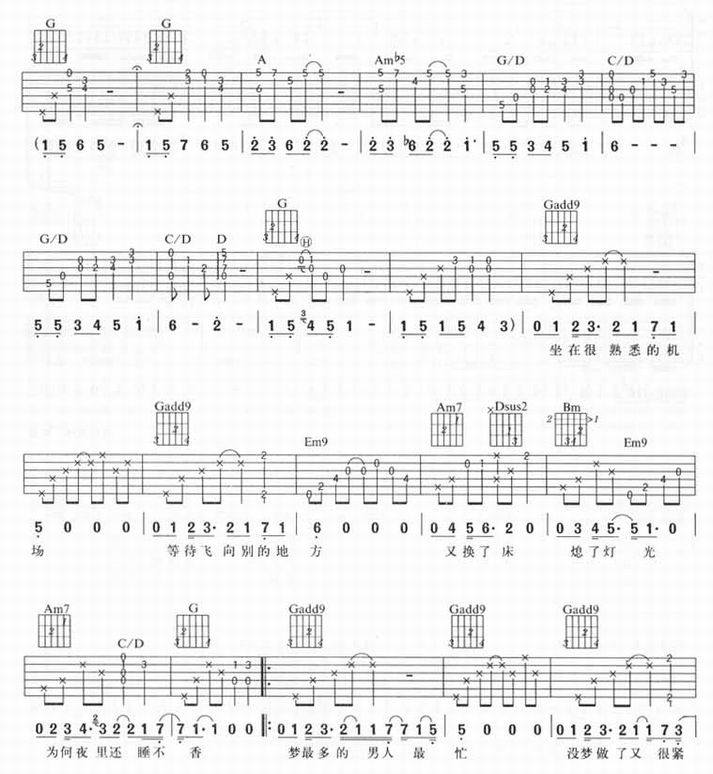 1=bA 转G 4/4 词曲:杨坤 编配: