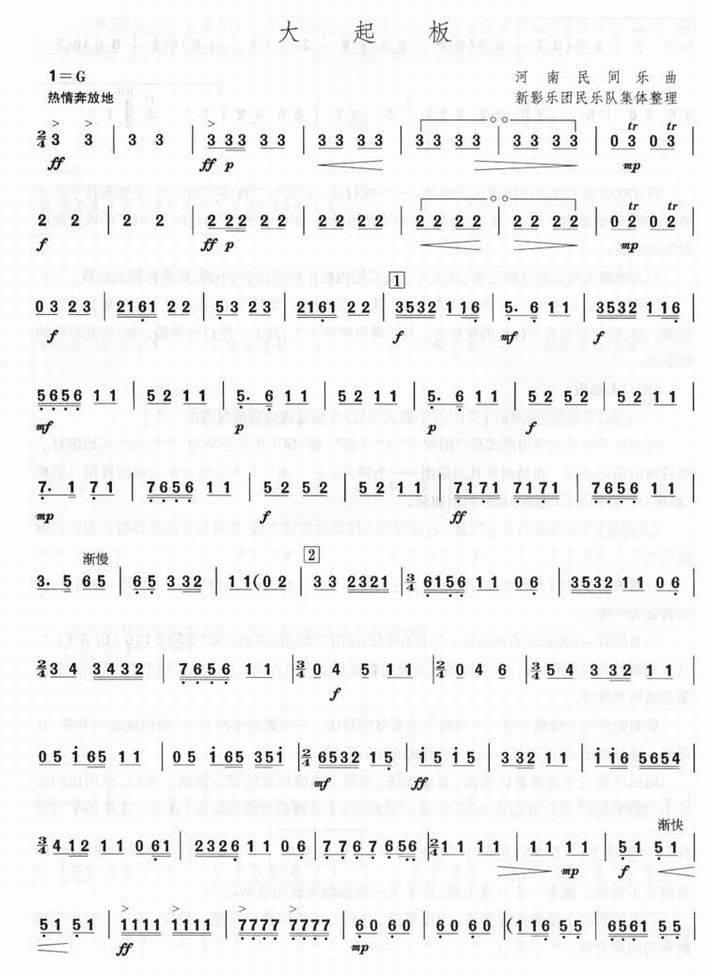 大起板-河南民间乐曲(简谱 民族乐曲简谱)