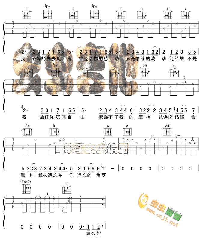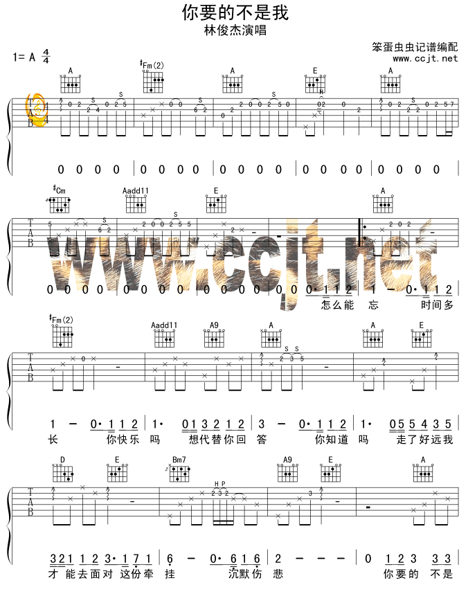 你要的不是我—林俊杰(吉他谱 吉他六线谱 吉他歌谱 吉它谱)