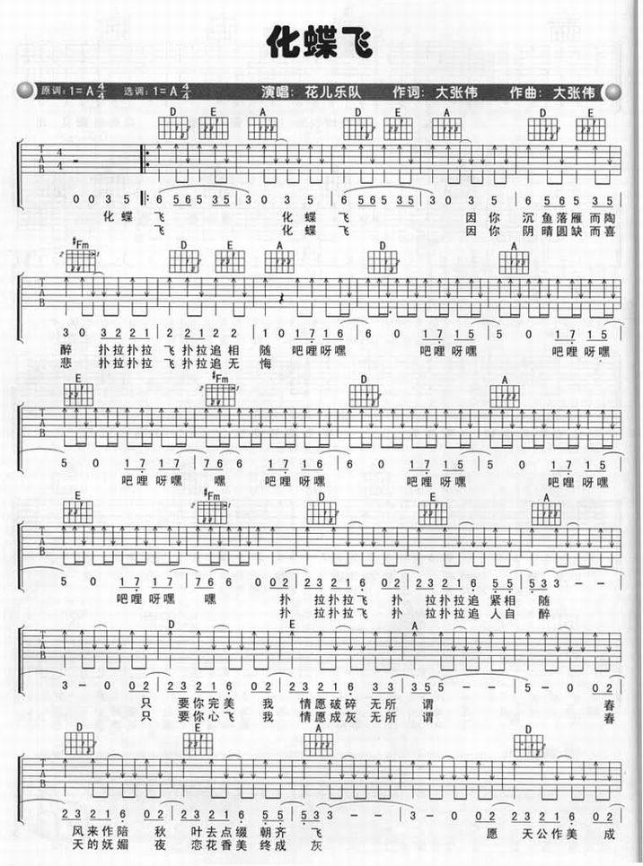曲名:化蝶飞 歌手:花儿乐队