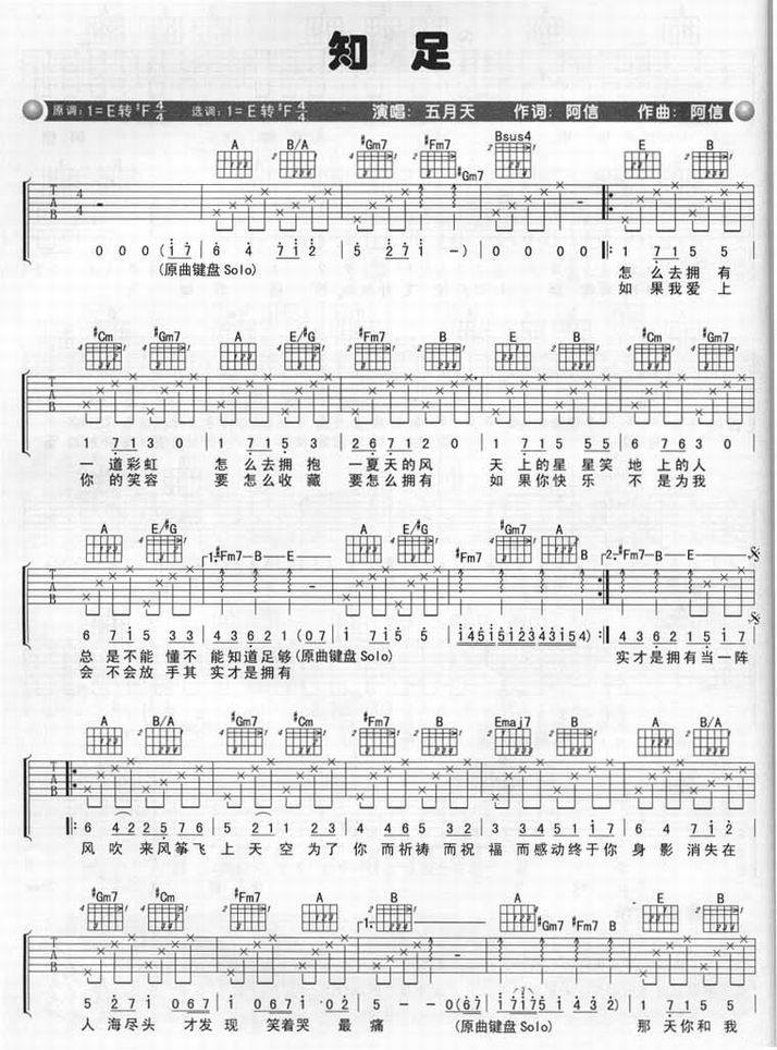 知足-五月天(吉他谱 吉他六线谱 吉他歌谱 吉它谱)