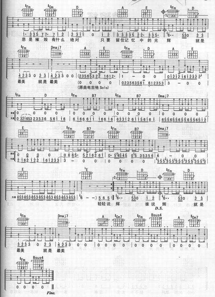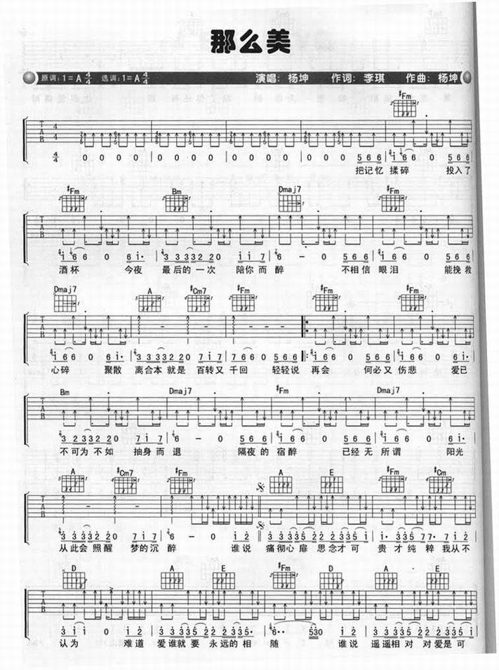 那么美-杨坤(吉他谱 吉他六线谱 吉他歌谱 吉它谱)