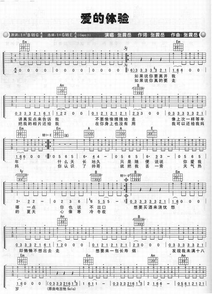 爱的初体验-张震岳(吉他谱 吉他六线谱 吉他歌谱 吉它谱)
