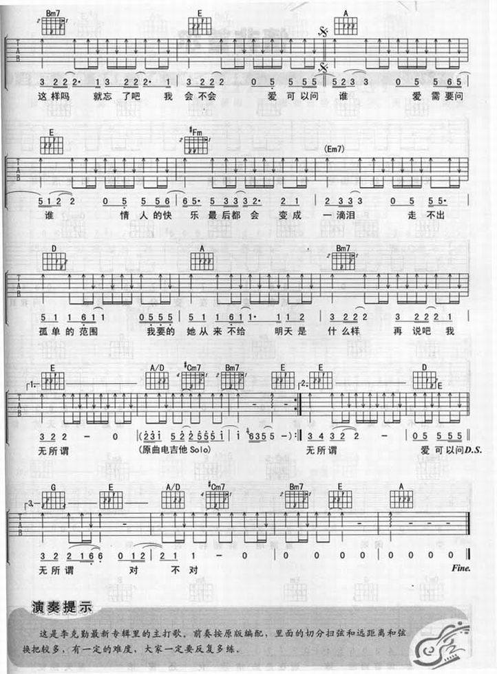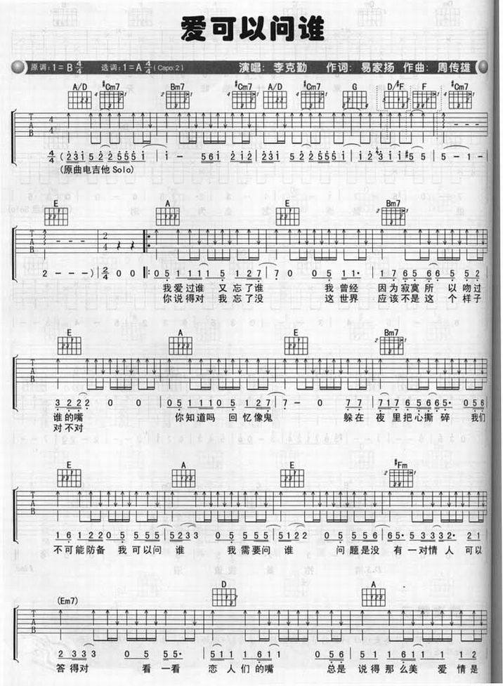 爱可以问谁-李克勤(吉他谱 吉他六线谱 吉他歌谱 吉它谱)
