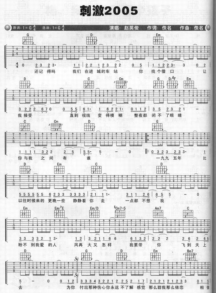 刺激2005-赵英俊(吉他谱 吉他六线谱 吉他歌谱 吉它谱)