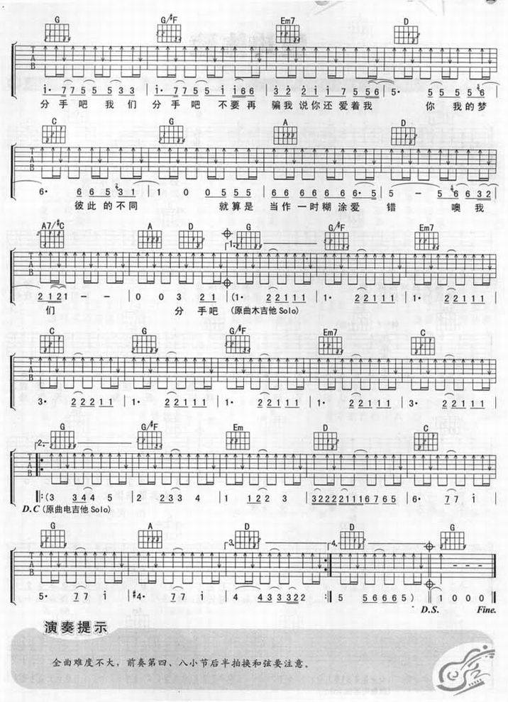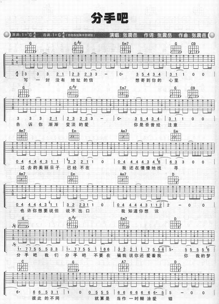 分手吧-张震岳(吉他谱 吉他六线谱 吉他歌谱 吉它谱)