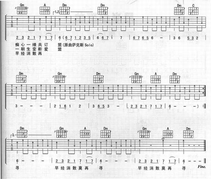 旧欢如梦-李克勤(吉他谱 吉他六线谱 吉他歌谱 吉它谱)