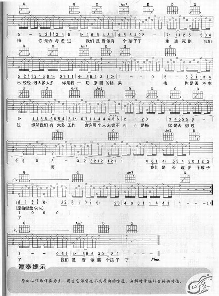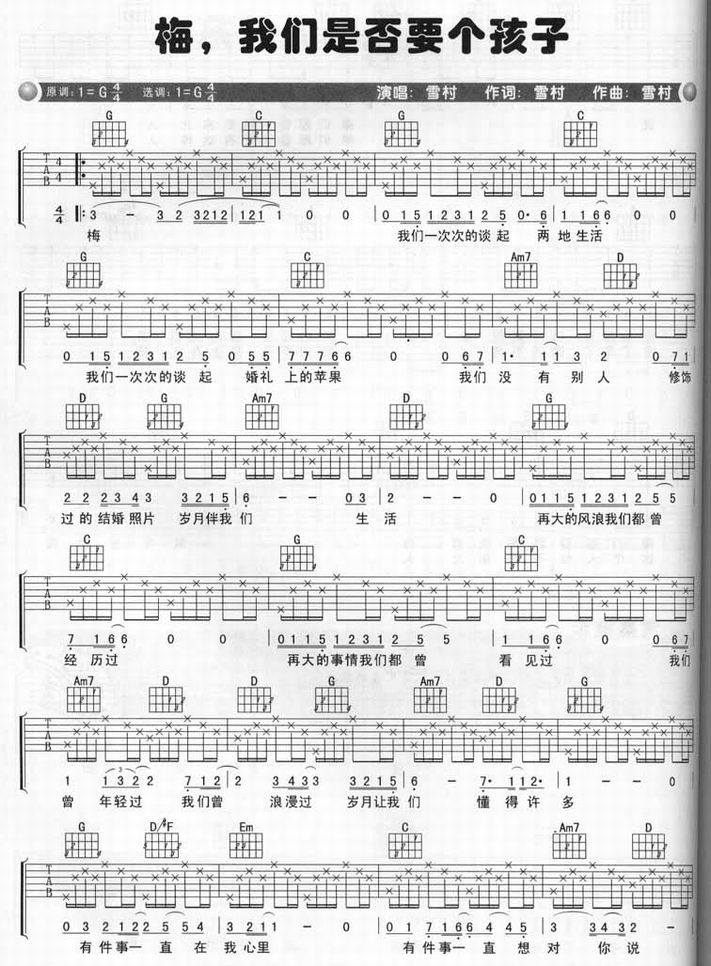梅,我们是否该要个孩子-雪村(吉他谱 吉他六线谱 吉他歌谱 吉它谱)