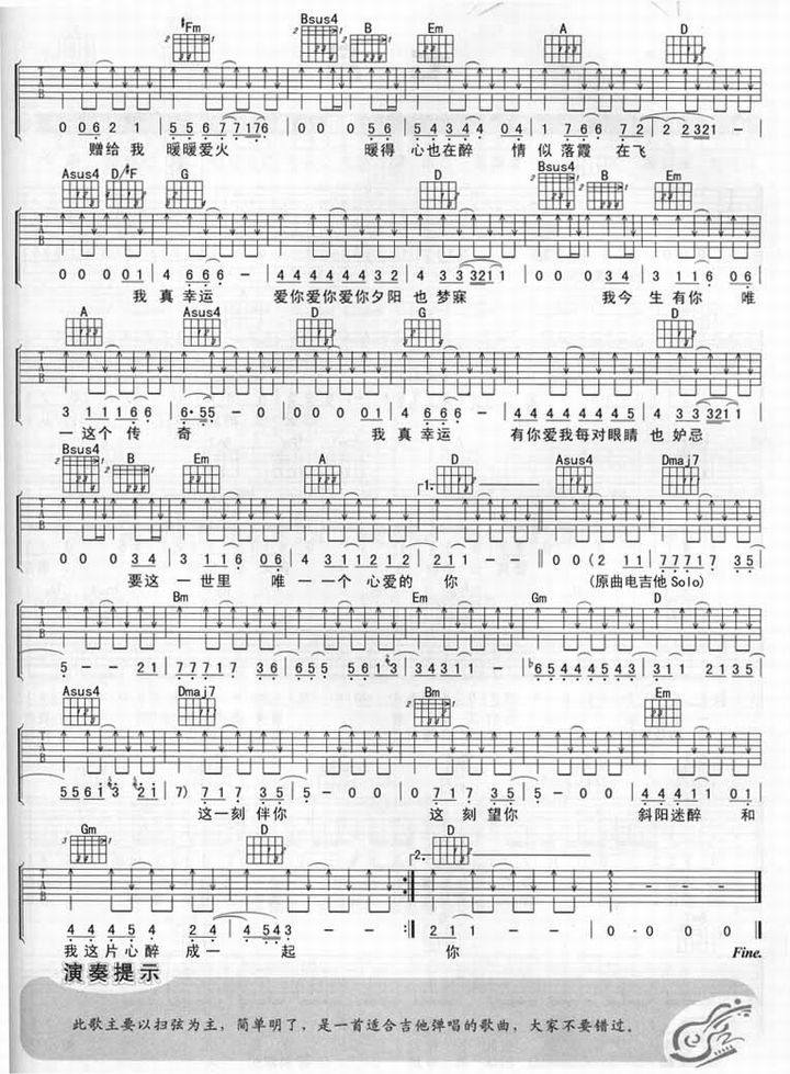 你是我今生唯一传奇-张学友(吉他谱 吉他六线谱 吉他歌谱 吉它谱)