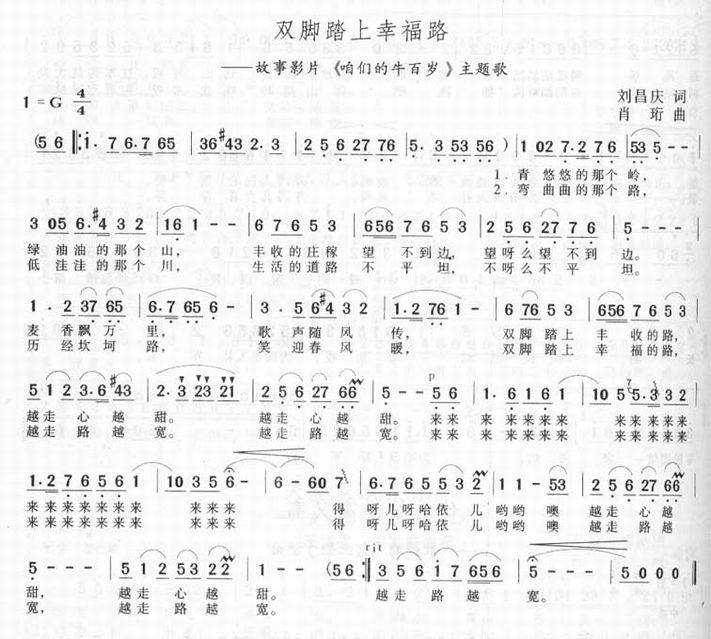 >> 双脚踏上幸福路-电影咱们的牛百岁主题歌(影视简谱)