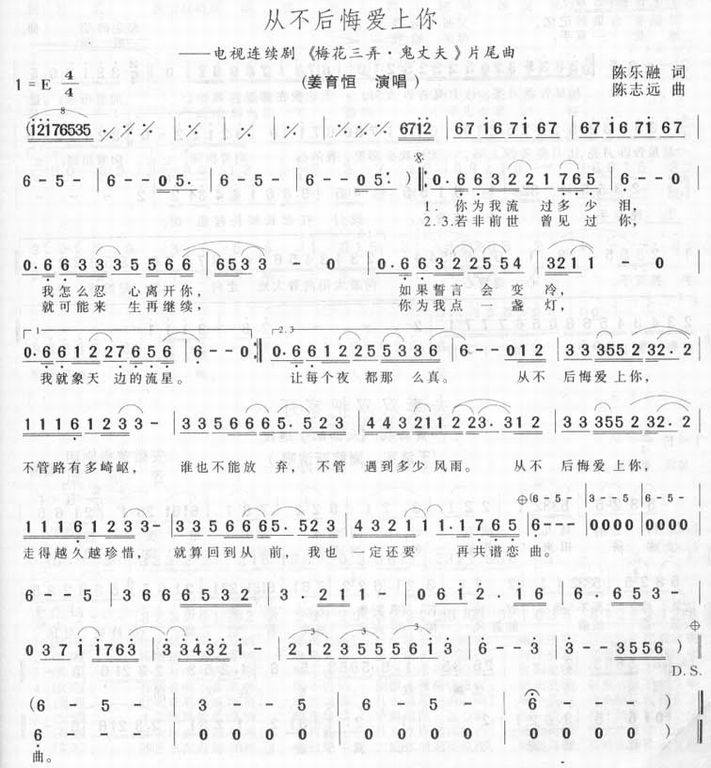>> 从不后悔爱上你-姜玉恒(影视简谱<梅花三弄>)