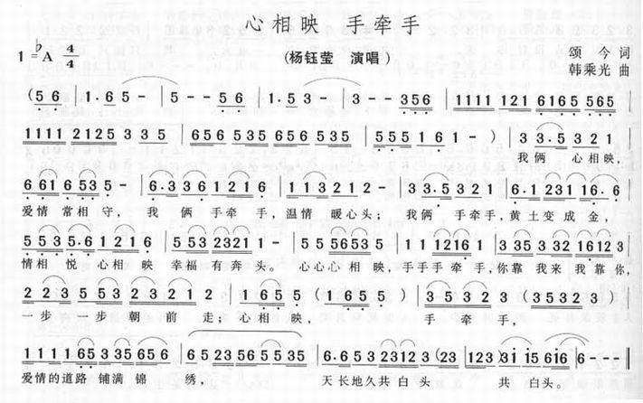 心相映,手相牵-杨钰莹(简谱 歌谱 歌曲简谱 合唱简谱 影视简谱)