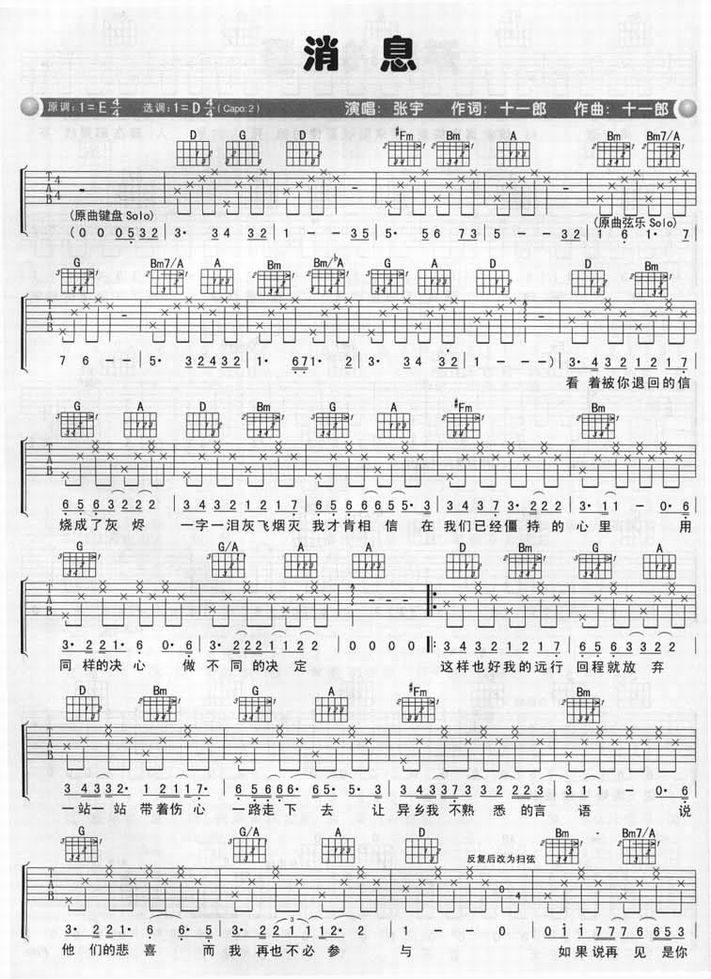 消息-张宇(吉他谱)