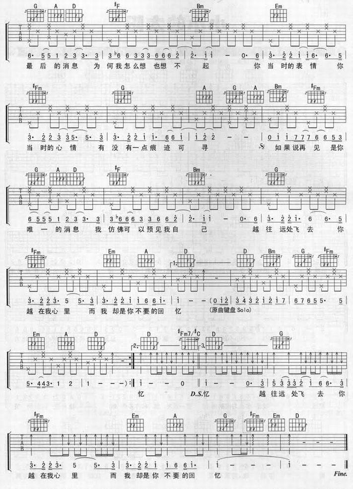 消息-张宇(吉他谱 吉他六线谱 吉他歌谱 吉它谱 影视吉他谱)