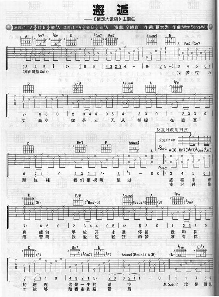>> 邂逅-辛晓琪(韩剧情定大饭店影视吉他谱)