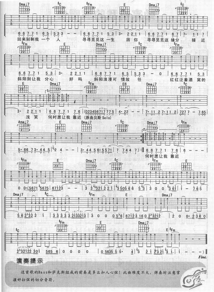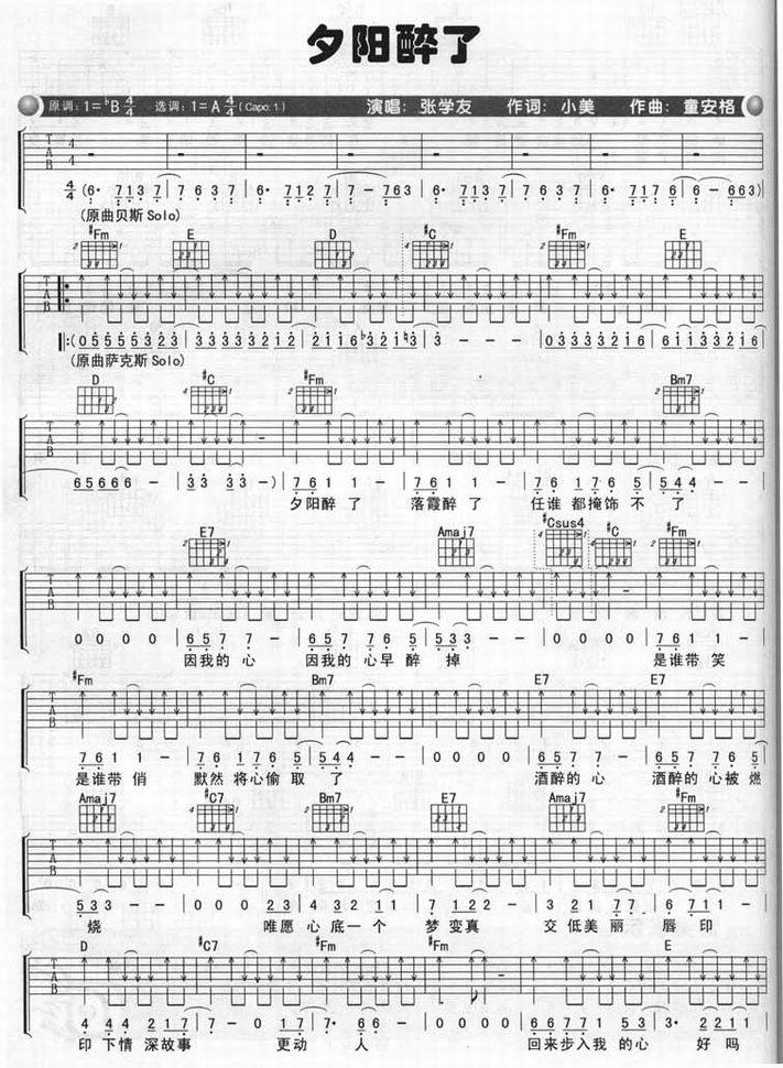 夕阳醉了-张学友(吉他谱 吉他六线谱 吉他歌谱 吉它谱 影视吉他谱)