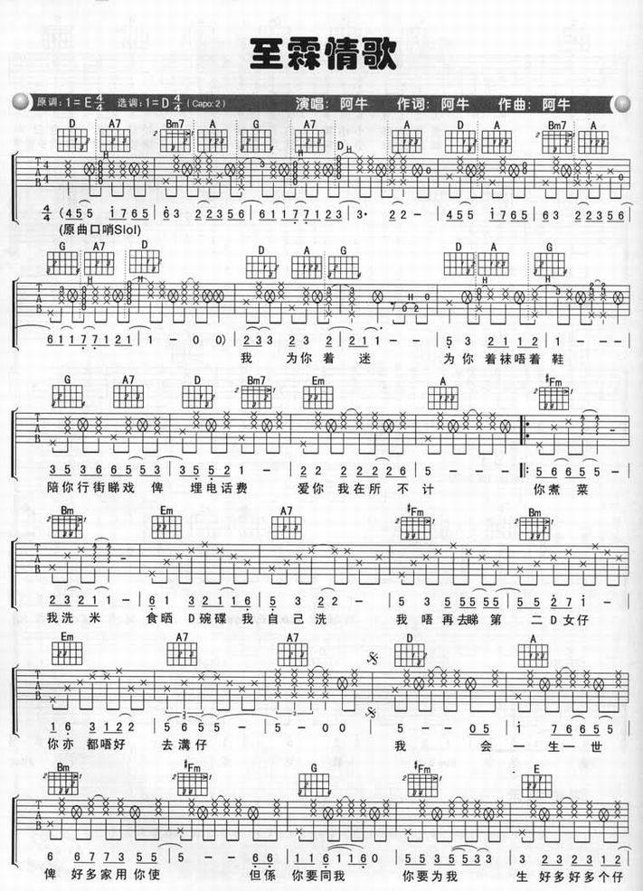 至霖情歌-阿牛(吉他谱 吉他六线谱 吉他歌谱 吉它谱 影视吉他谱)