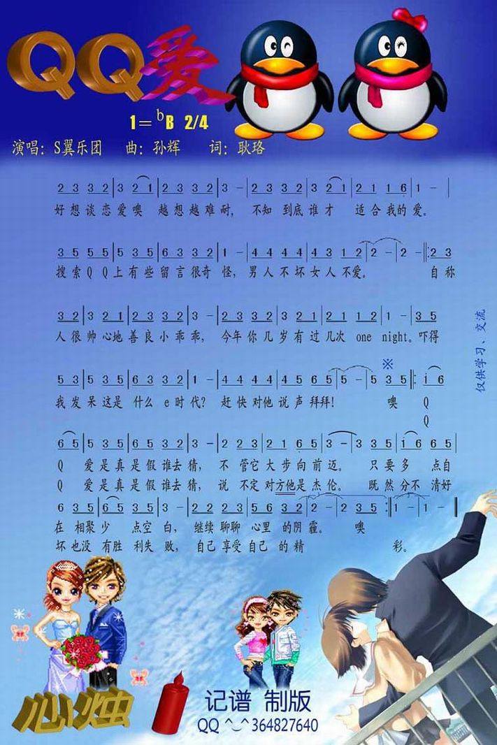 >> QQ爱-s翼乐团(简谱_心烛制谱)