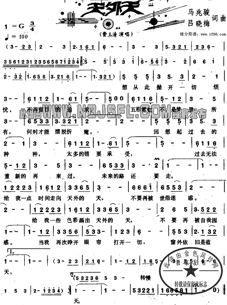 天外天-费玉清(简谱)
