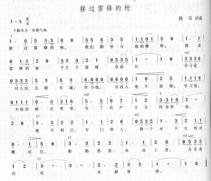 接过雷锋的枪-合唱(简谱 歌谱 歌曲简谱 合唱简谱 影视简谱)