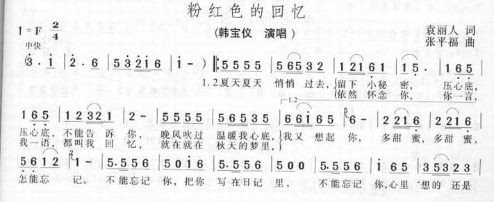 粉红色的回忆-韩宝仪(简谱 歌谱 歌曲简谱 合唱简谱 影视简谱)