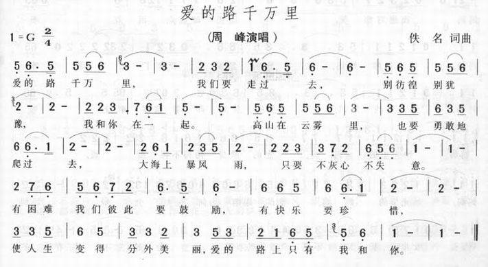 >> 爱的路千万里-周峰(简谱)