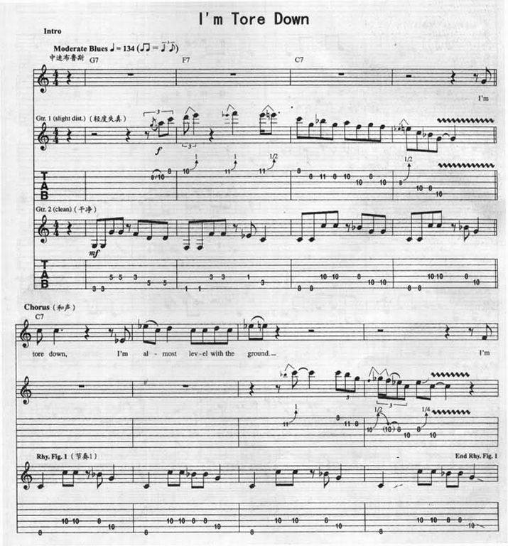 I"m Tore Down-Eric Clapton(电吉他曲谱 吉他六线谱 古典吉他曲谱 吉它谱 指弹独奏谱)