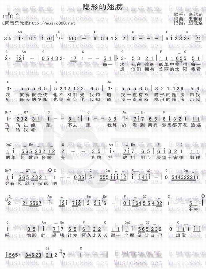 曲名:隐形的翅膀 歌手:张韶涵 专辑:潘朵拉