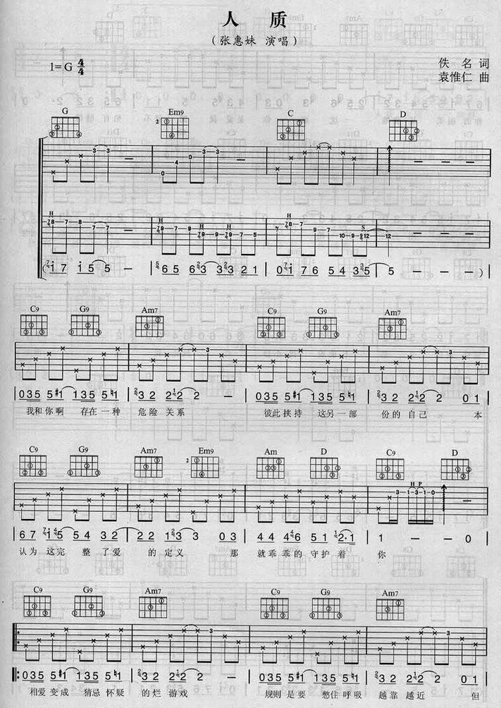 >> 人质-张惠妹(吉他谱)