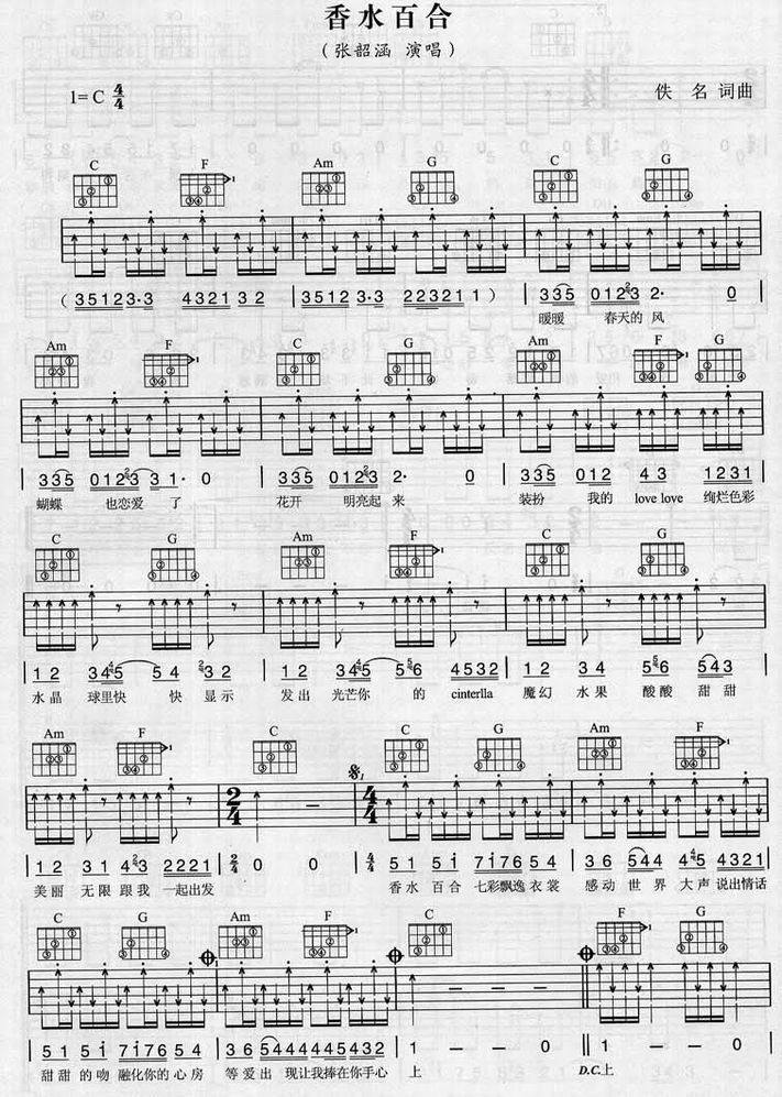 香水百合-张韶涵(吉他谱 吉他六线谱 吉他歌谱 吉它谱 影视吉他谱)