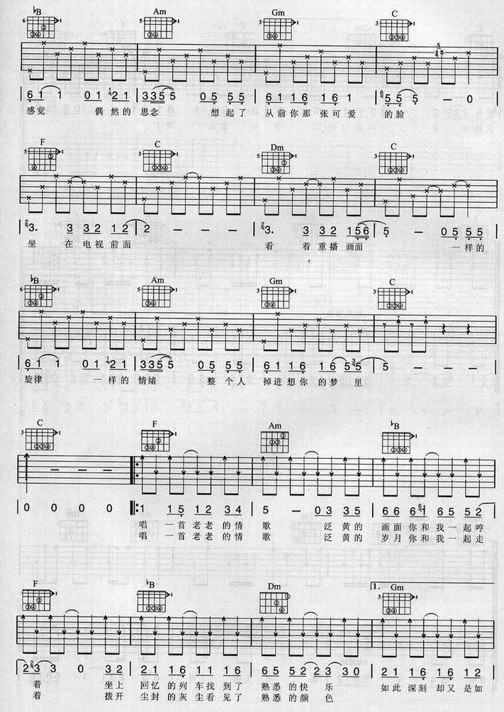老情歌-江涛(吉他谱 吉他六线谱 吉他歌谱 吉它谱 影视吉他谱)