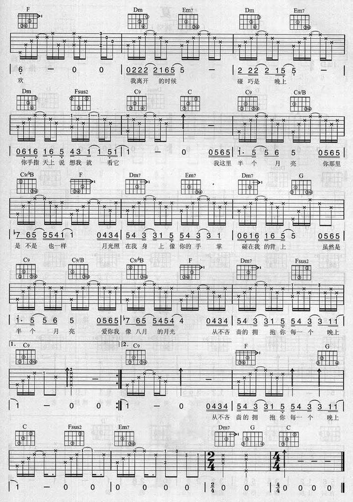 半个月亮-梁静茹(吉他谱 吉他六线谱 吉他歌谱 吉它谱 影视吉他谱)