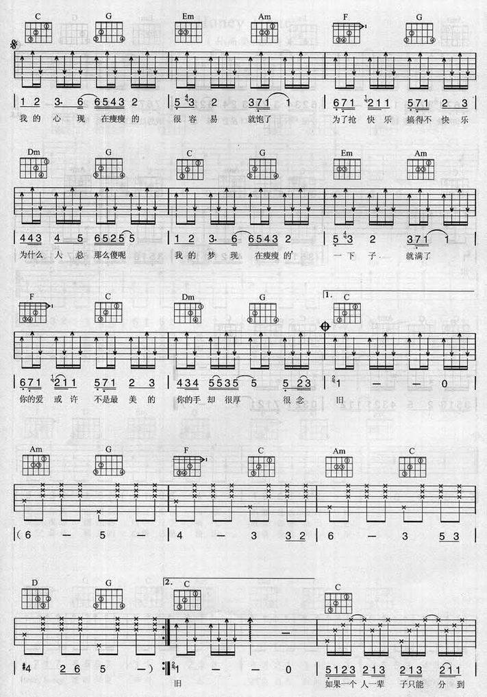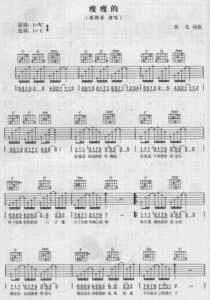瘦瘦的-梁静茹(吉他谱 吉他六线谱 吉他歌谱 吉它谱 影视吉他谱)
