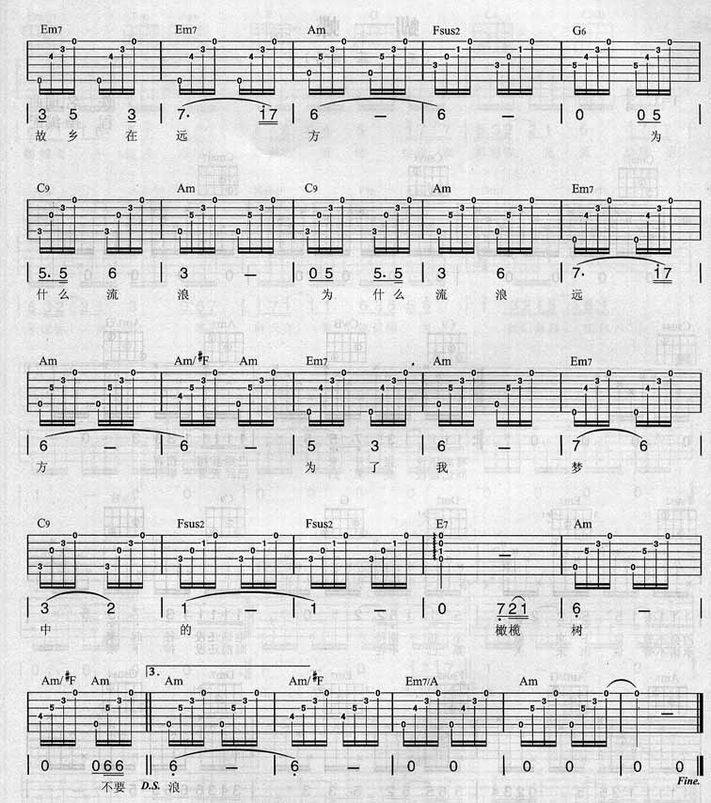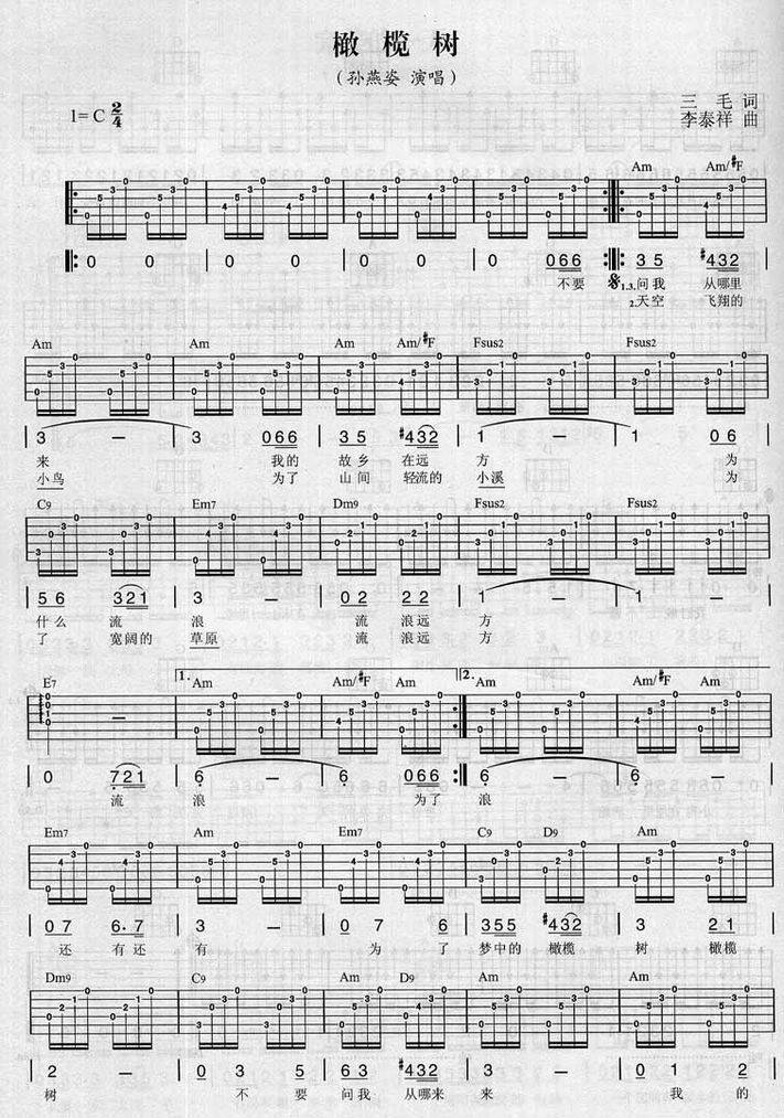 橄榄树-孙燕姿(吉他谱 吉他六线谱 吉他歌谱 吉它谱 影视吉他谱)