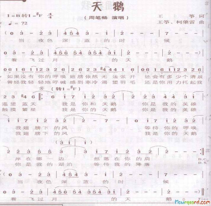 天鹅-周笔畅(简谱 歌谱 歌曲简谱 合唱简谱 影视简谱)